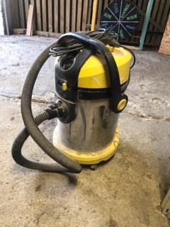 aspirateur de chantier karcher jaune, aspire l'eau et la poussiere